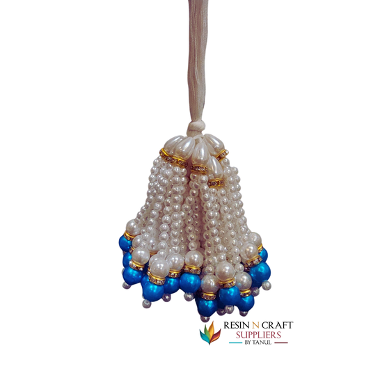 Royal Blue & Pearl Beaded Latkans / Moti Tassels