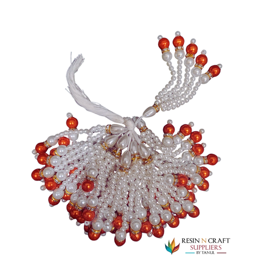 Saffron Orange & Pearl Decorative Latkans / Moti Tassels