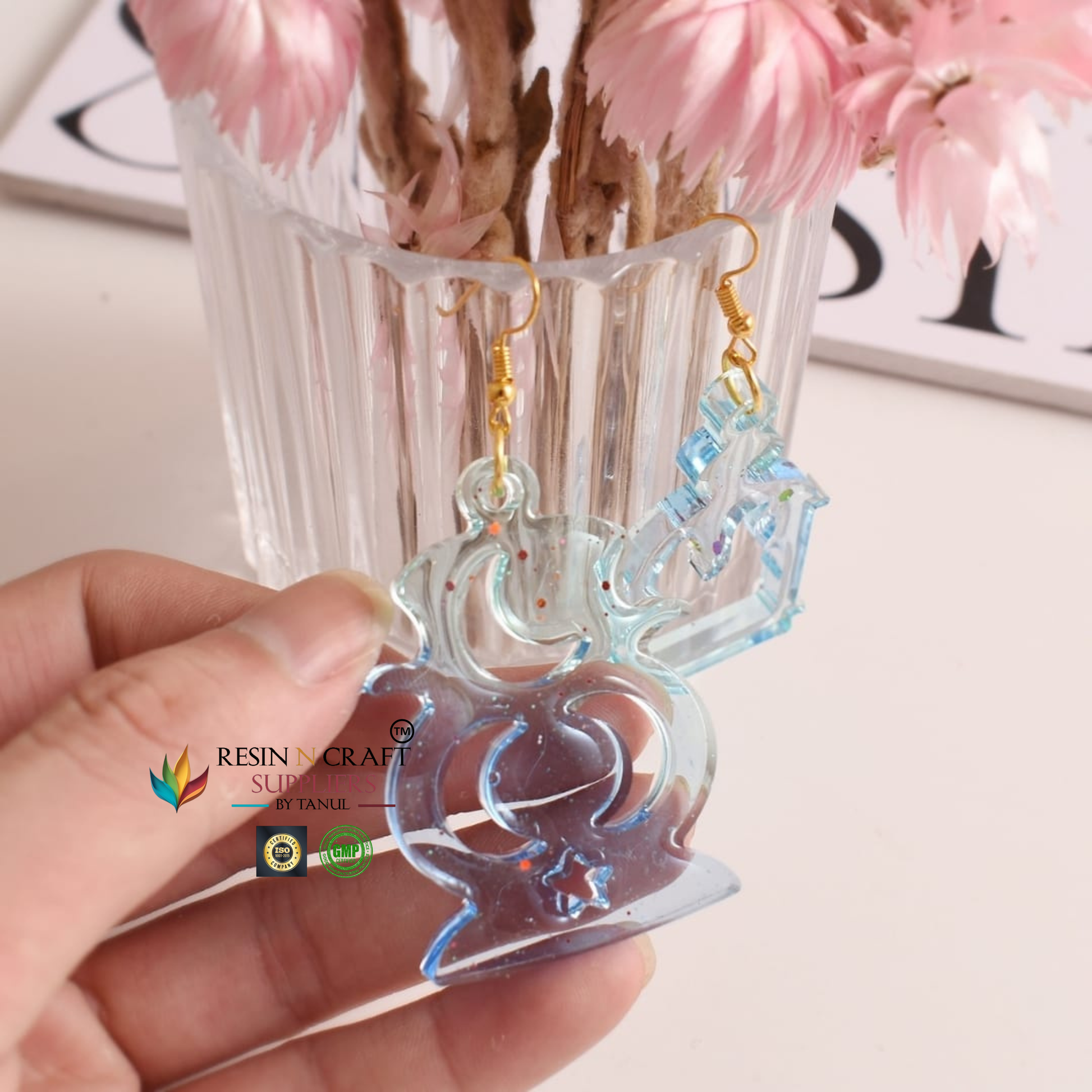 Perfect for creating lightweight festive earrings and pendants. Add glitter, gold flakes, pigments, or dual-tone gradients to achieve a premium handcrafted finish for your special collections. 🌙✨